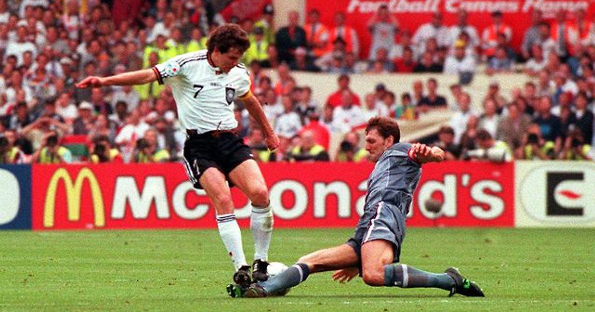 ЧЕ-1996, 1/2 Финала. Англия - Германия. Генерал Английской Обороны - Тони АДАМС пытается остановить Немецкого Гроссмейстера Середины поля - Андреаса МЁЛЛЕРА... Но в тот Вечер А.МЁЛЛЕР стал подлинным Хозяином положения на поле а возможно и...новым Гюнтером Нетцером немецкого футбола!.. И с высоты этой Дирижёрской Стратегии, его не смог тогда поколебать даже такой тонкий Дирижёр атак английской сборной, как сам Пол Гаскойн!..