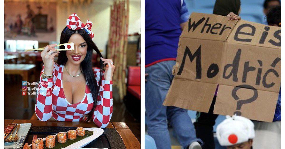 А на трибунах стадиона во время матча Хорватии с Японией был замечен болельщик с плакатом, на котором был написан ставший мемом вопрос «А где же Модрич?» - так поклонники сборной Саудовской Аравии подшучивали над Лео после победы в первом туре группового этапа.