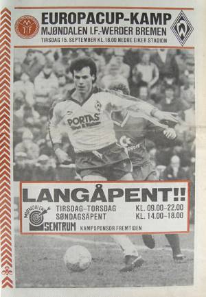 Третье участие клуба в еврокубках состоялось десять лет спустя, в 1987-м. На этот раз "Мьёндален" снова начинал дома, и его соперником стал бременский "Вердер". И снова норвежский клуб проиграл без шансов, пропустив пять безответных мячей. Ответная игра в Бремене превратилась в пустую формальность, но "Мьёндален" с шестой попытки выиграл еврокубковый матч! Гол Пера Терье Маркусена на 78-й минуте принес норвежскому клубу исторический успех. С тех пор "Мьёндален" не играл в еврокубках и в настоящее время команда выступает во второй по силе лиге чемпионата Норвегии.