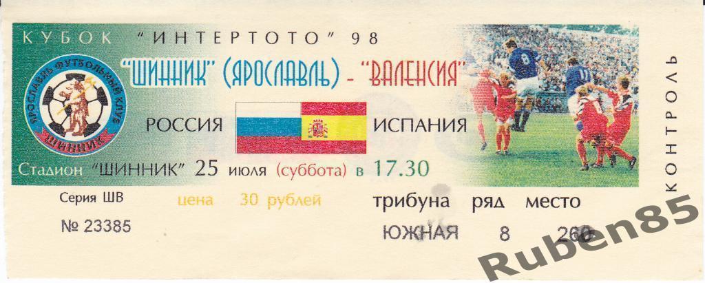 Ярославский "Шинник" знаком исключительно с Кубком Интертото. Команда играла в турнире в 1998 и 2004 годах, когда он уже был дополнительной квалификацией Кубка УЕФА. Оба раза ей удавалось преодолеть один раунд турнира. В 1998 году команда во втором раунде турнира дважды обыграла с общим счетом 4-1 финский ТПС и получила на следующей стадии в соперники "Валенсию". Первый матч, проходивший на "Месталье", завершился разгромной победой хозяев 4-1.
