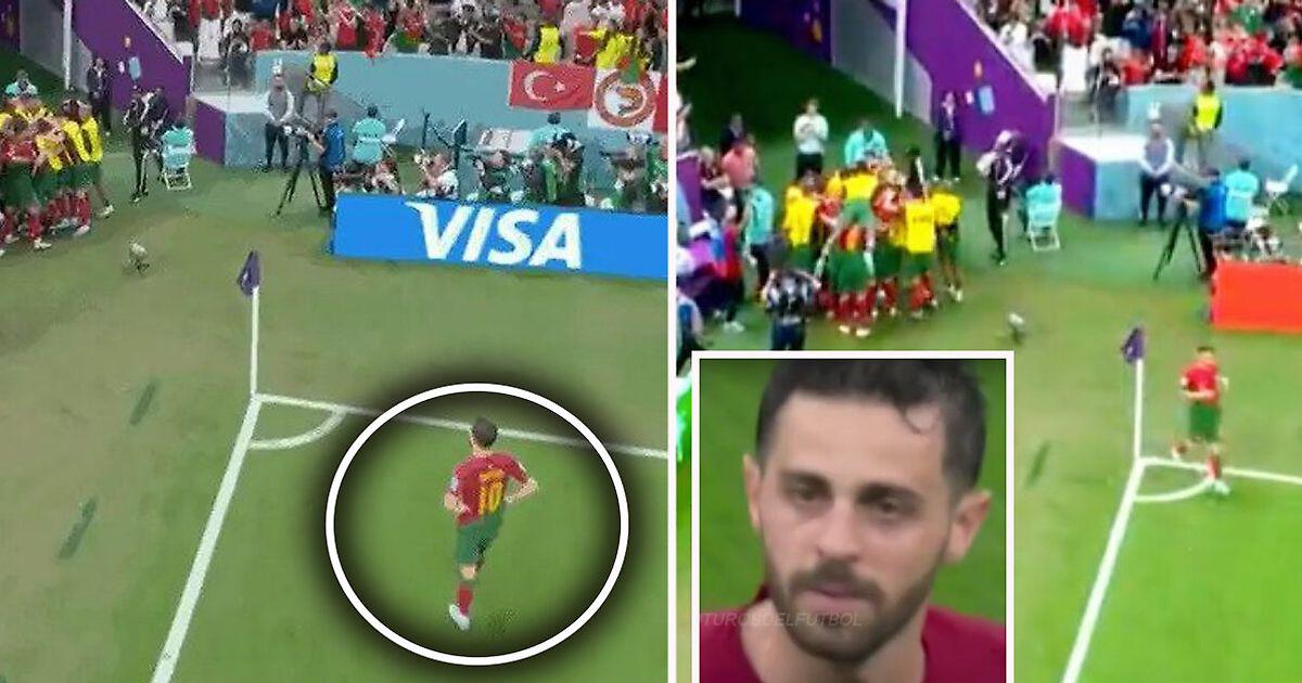 Бернарду после празднования оказался на половине поля Швейцарии – следовательно, как решили фанаты, игру возобновить было нельзя.