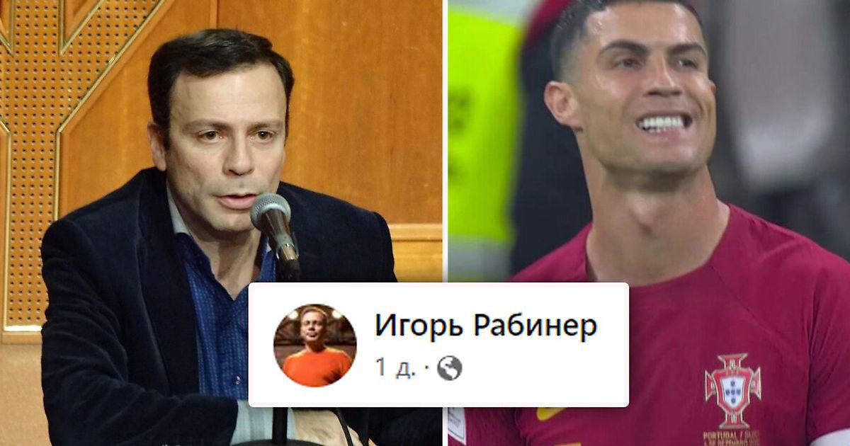 Журналист Игорь Рабинер опубликовал пост, посвященный Криштиану Роналду. Рабинер запостил скриншот с Роналду, который уходит с поля после матча со Швейцарией.