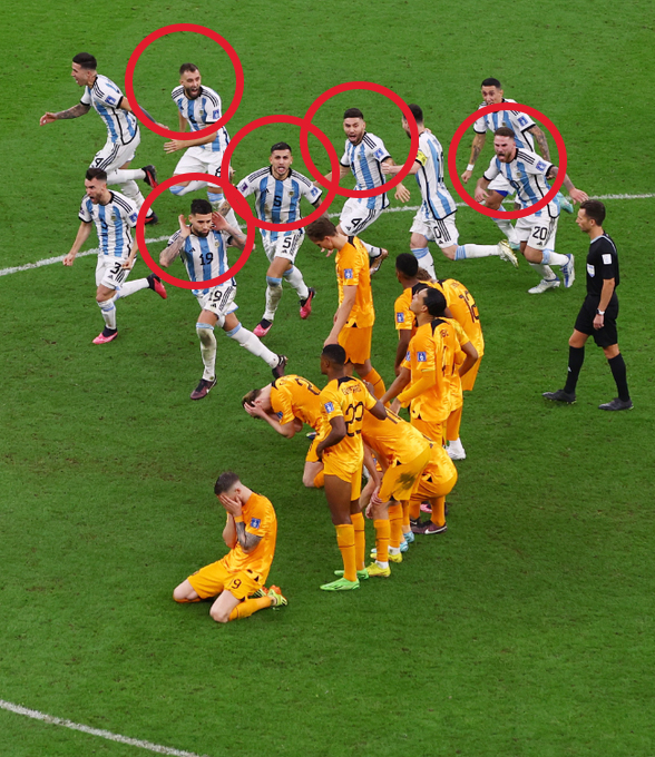 Посмотрите на жесты Паредеса, Отаменди, Пессельи, Мак Аллистера и Монтьеля – они не упустили случая поиздеваться над расстроенными голландцами.