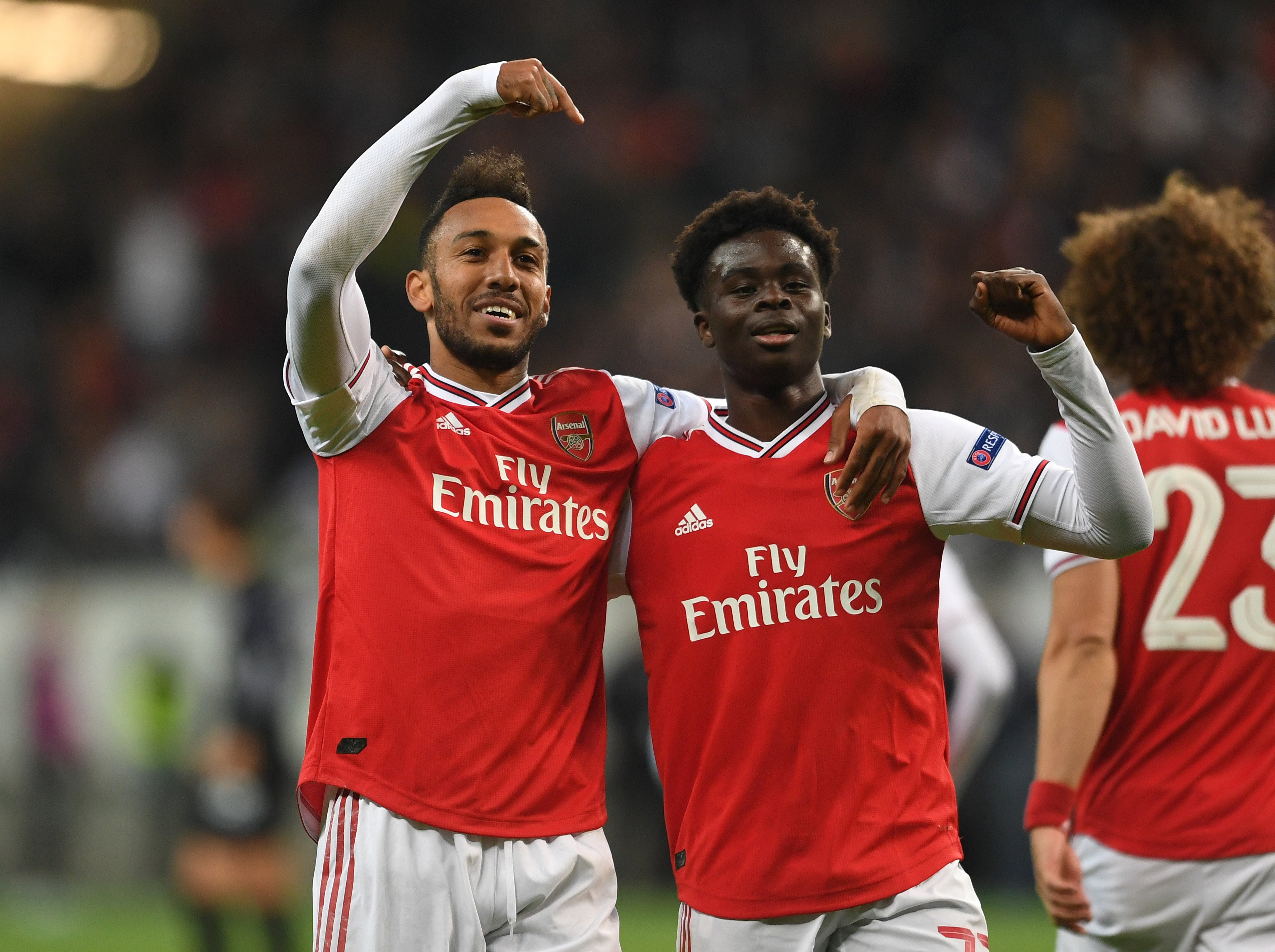19 сентября 2019 года Букайо вышел в стартовом составе в групповом матче Лиги Европы против «Айнтрахта» и забил свой первый гол за «Арсенал» на 85 минуте, помимо гола, он отдал ещё две голевых передачи. Когда Сака исполнил свою детскую мечту — забить за «Арсенал», он быстро набрал отцу и сообщил об этом по FaceTime.
