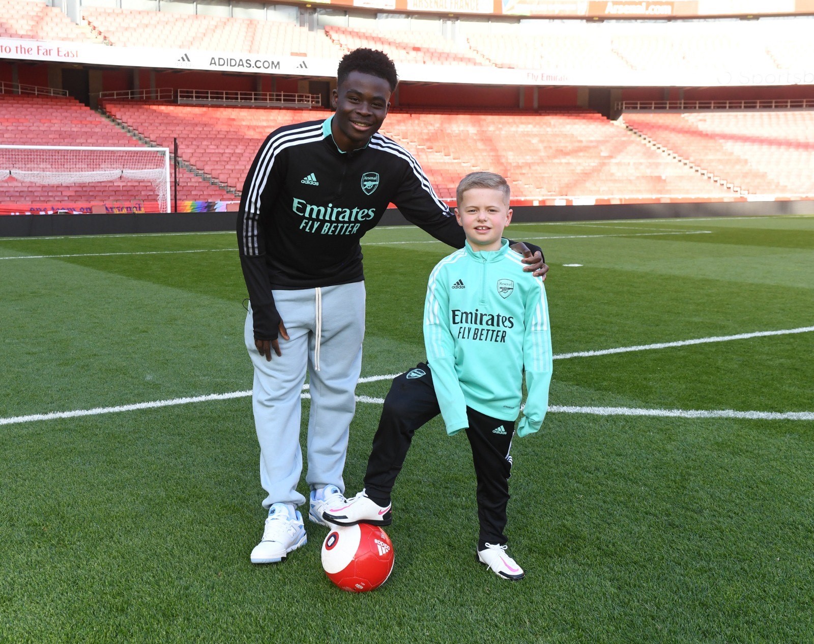 Сака разработал план с родителями Тедди – летом этого года семья школьника отправилась с экскурсией на «Эмирейтс», и пока малыш сидел в раздевалке, в ней появился Букайо. Он обратился к фанату: «Тед, хочешь мороженого? Шоколад или клубника?». И тот любезно ответил «Хочу...». Они взяли по мороженому и отправились гонять мяч на поле «Эмирейтс».