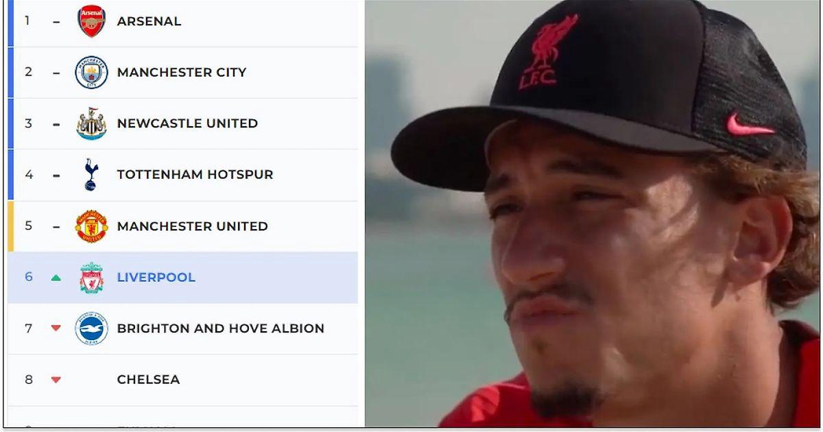 Сейчас лидером чемпионата является «Арсенал», лондонский клуб опережает «Ливерпуль», занимающий шестое место, на 15 очков после 14 матчей.