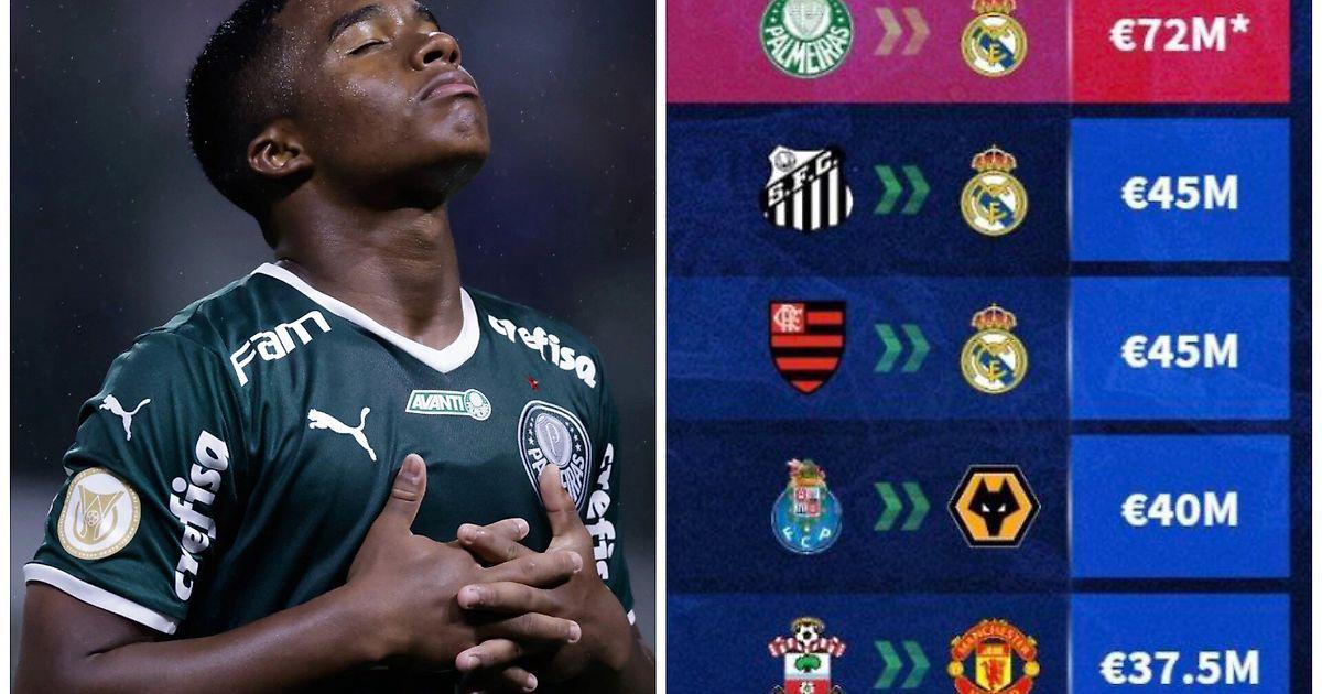 В четверг «Реал» объявил о подписании 16-летнего Эндрика за 72 млн евро, что сделало бразильца самым дорогим футболистом до 18 лет. Интересно, что все три самых дорогих юниора приобретены именно «Мадридом».