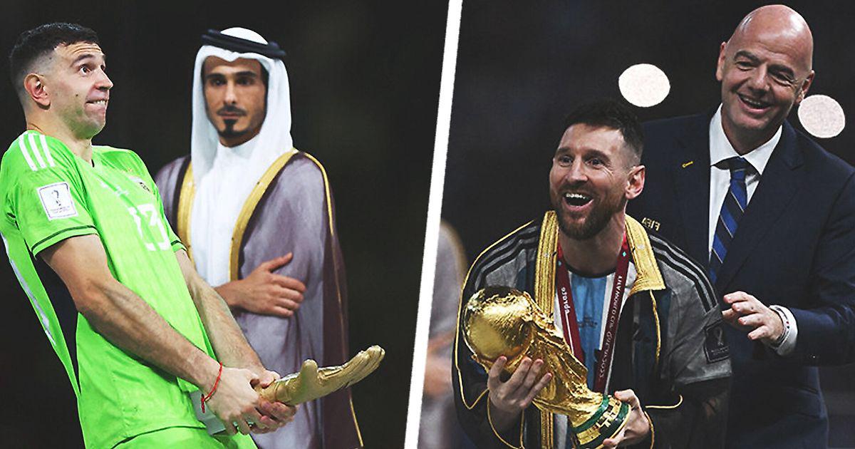 Как только Лео получил медаль, ему надели темную накидку, которую заготовил и положил на плечи эмир Катара Тамим ибн Хамад Аль-Тани. Месси не сразу понял, как правильно это носить, ему подсказали – и забирать трофей он пошел уже в темной мантии.