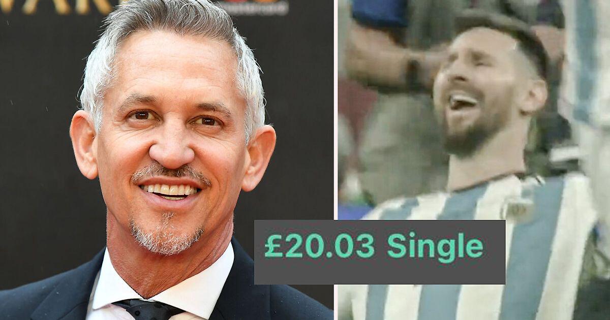 Для Гари Линекера финал чемпионата мира стал двойным счастьем: во-первых, его любимый футболист Лео Месси наконец выиграл главный трофей, а во-вторых, сам гари неплохо заработал на ставке.
