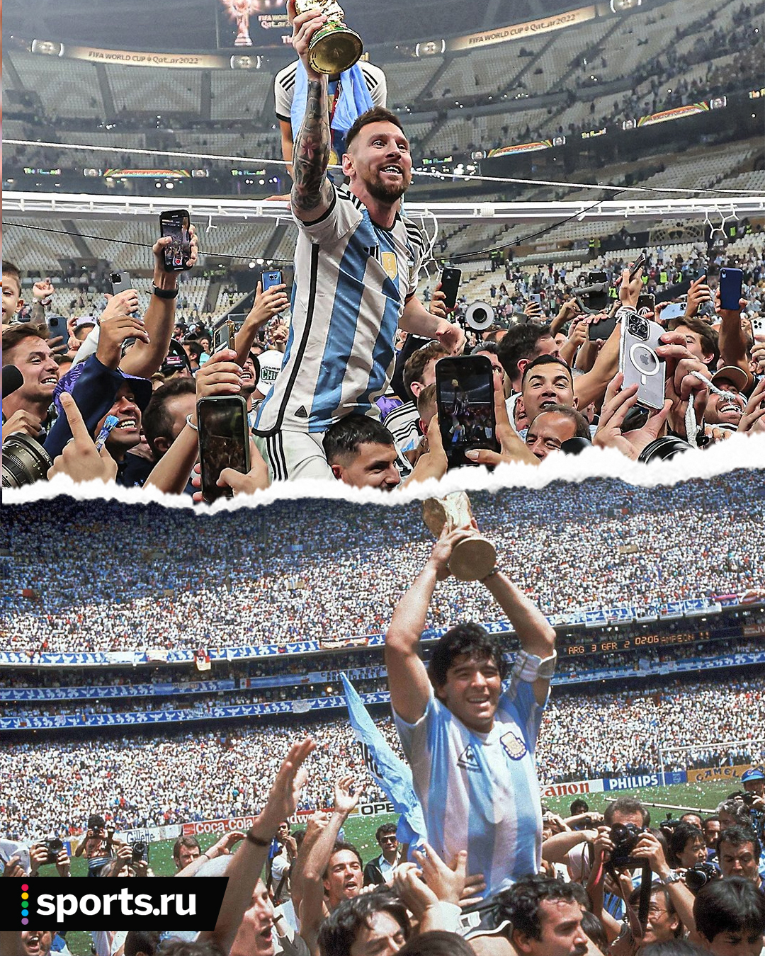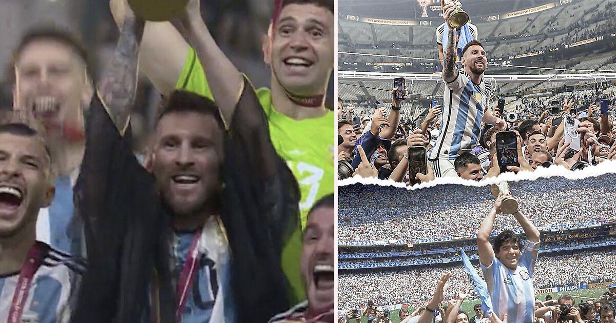 Это произошло благодаря тому, что Месси и остальные аргентинцы во время празднования буквально скопировали легендарный кадр после победы сборной на ЧМ-1986.