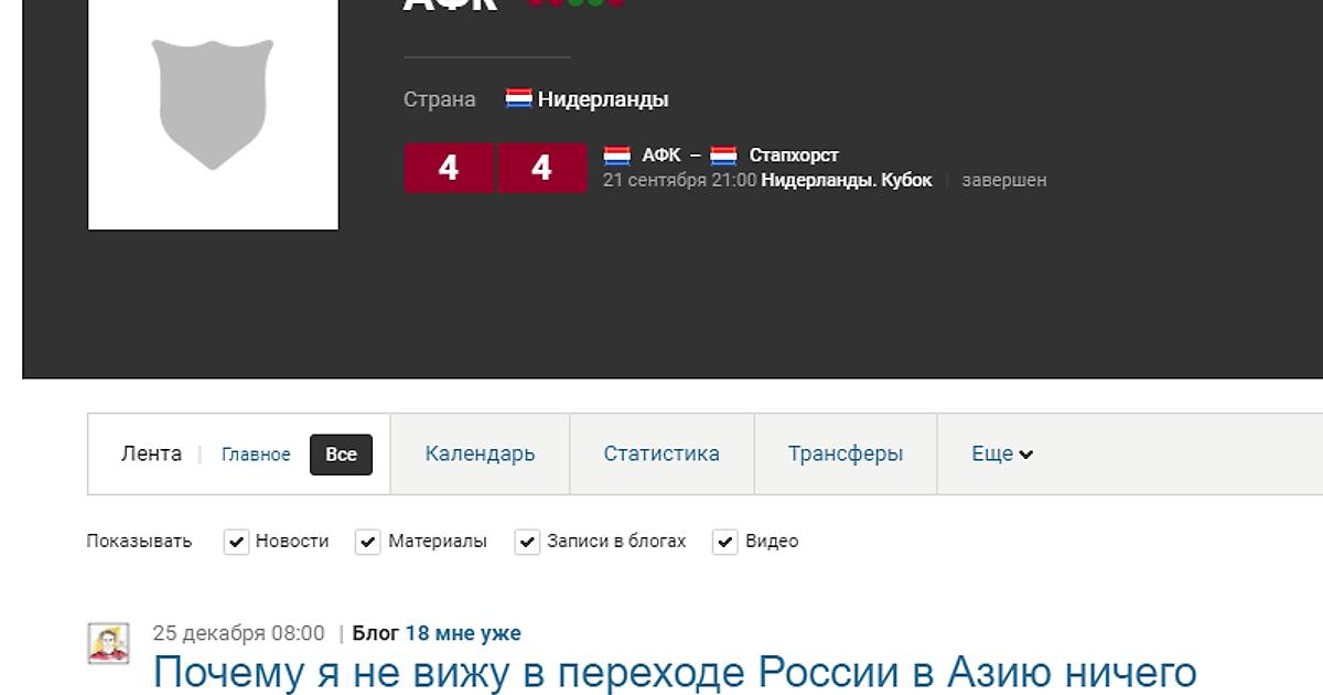 Ситуация довольно забавная. Амстердамский футбольный клуб (сокращенно АФК) из Второго дивизиона (третьей по силе лиги Нидерландов), в отличие от множества своих тезок, указан в списке тегов без указания города, в котором он играет свои домашние матчи.