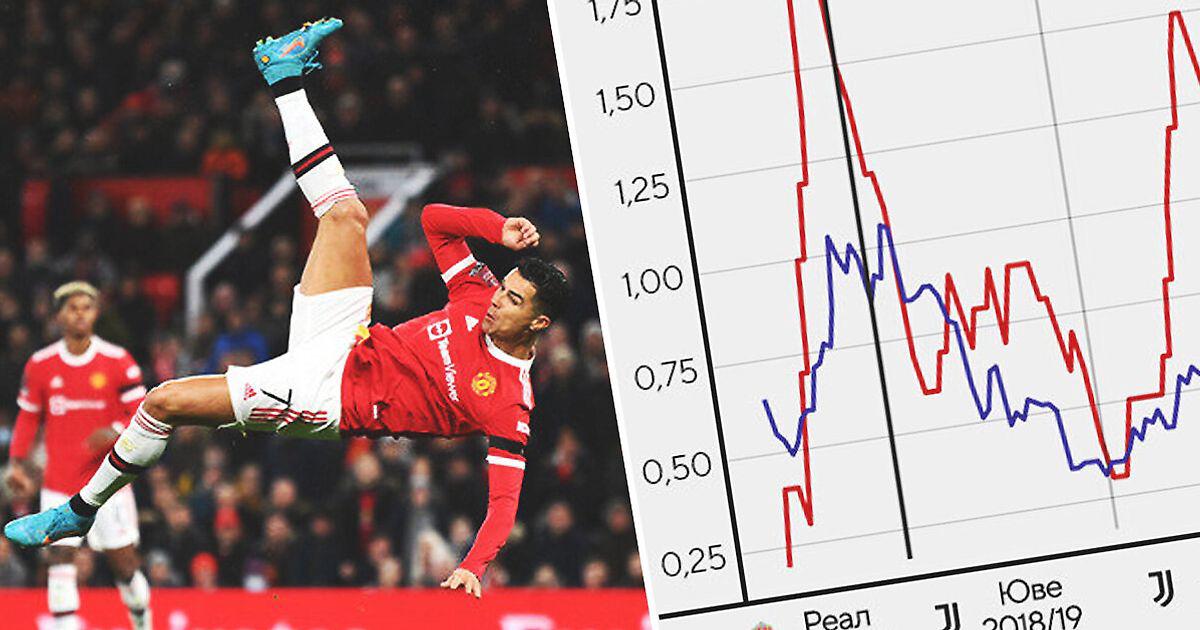 Но с 2018-го будто бы что-то резко сломалось. С этого момента Роналду играл в командах, которые как минимум не прибавляли в долгосрочной перспективе, а скорее даже шли в тупик. Это подтверждают и данные, и оценки боссов клубов (просто так не меняют тренеров), и впечатления болельщиков (возможно, большинства).