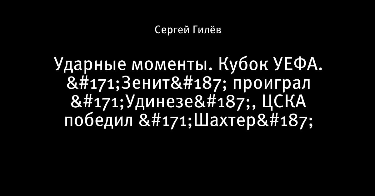 Ударные моменты. Кубок УЕФА. «Зенит» проиграл «Удинезе», ЦСКА победил «Шахтер»