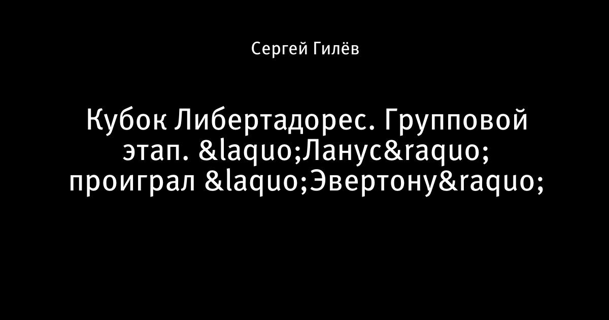 18 марта 2009, 15:26 Кубок Либертадорес. Групповой этап. «Ланус» проиграл «Эвертону» И другие матчи.Группа 2 Депортиво Куэнка Депортиво Тахира 3:1 Группа 6 Ланус Эвертон 1:2 Автор Сергей Гилёв Этот пост опубликован в блоге на Трибуне Sports.ru. Присоединяйтесь к крупнейшему сообществу спортивных болельщиков! Другие посты блога Разборки в олимпийском Париже