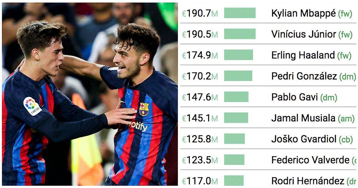По оценке CIES FootballObservatory, Педри (170,2 млн евро), Гави (147,6 млн евро), Френки де Йонг (109,3 млн евро) и Ферран Торрес (106,8 млн евро) являются четырьмя игроками «Барселоны» с оценочной стоимостью более 100 млн евро.