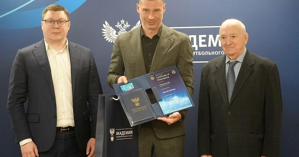 Среди тех, кто получил дипломы, — экс-футболисты сборной России Алексей и Василий Березуцкие, Александр Кержаков. Также среди обладателей лицензии — Спартак Гогниев, Олег Кузьмин, Мурад Мусаев, Роман Шаронов, Дмитрий Пятибратов и другие. Обучение проходило с 2020 года. Во время обучения основной упор делался на практическую работу на футбольных полях — занятия проходили в «Лужниках» с участием приглашенных детско-юношеских команд За обучением наблюдали приглашенные специалисты, обладающие лицензией PRO-УЕФА. Тренеры получали задания, общались, обменивались опытом, наблюдали за работой коллег. Лицензия PRO-УЕФА позволяет занимать высшие тренерские и управленческие должности в любой стране мира. Полный список обладателей лицензии: Арайс Владимир Михайлович, Березуцкий Алексей Владимирович, Березуцкий Василий Владимирович, Гогниев Спартак Артурович, Емельянов Дмитрий Владимирович, Игнашевич Сергей Николаевич, Кержаков Александр Анатольевич, Корниленко Сергей Александрович, Кузьмин Олег Александрович, Мишаткин Максим Юрьевич, Могилевский Павел Викторович, Мусаев Мурад Олегович, Осинов Михаил Святославович, Первушин Сергей Александрович, Пятибратов Дмитрий Анатольевич, Сальников Михаил Валерьевич, Шабаров Иван Евгеньевич, Шаронов Роман Сергеевич, Шахгельдян Армен Андраникович, Яровинский Олег Хрисанфович.
