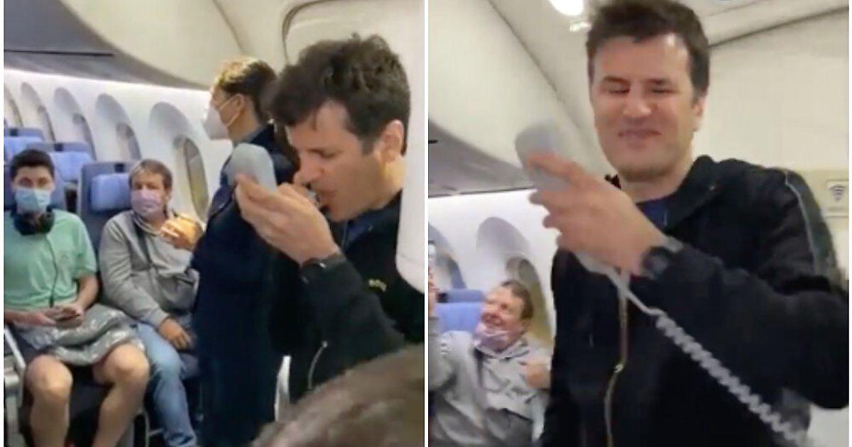 В Твиттере появилось видео, где он исполнял национальный гимн прямо в самолете. Андрес использовал губную гармошку и телефон для объявлений. Несмотря на то, что подобные вещи запрещены в самолете, кажется, что противников у этого мероприятия не было совсем.