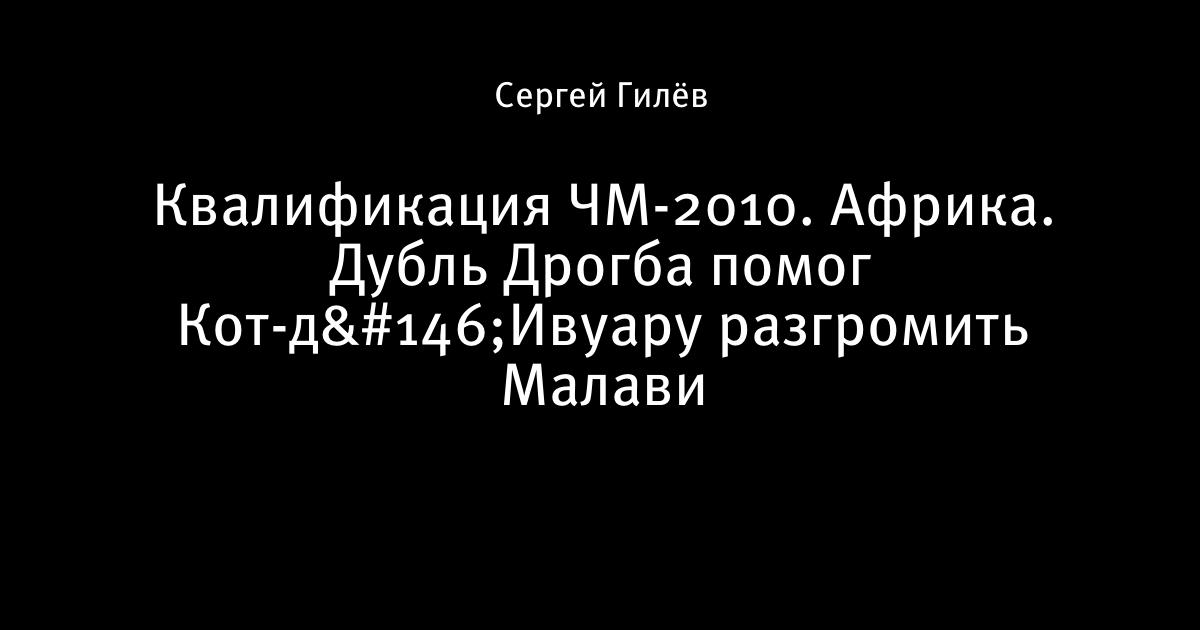 Квалификация ЧМ-2010. Африка. Дубль Дрогба помог Кот-дИвуару разгромить Малави