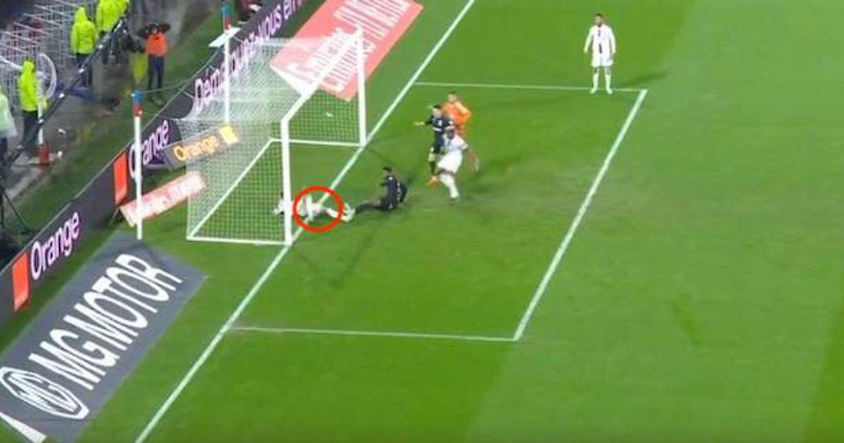 1. Корантен Толиссо и Тиаго Мендес одновременно махнули мимо мяча, который могли остановить.