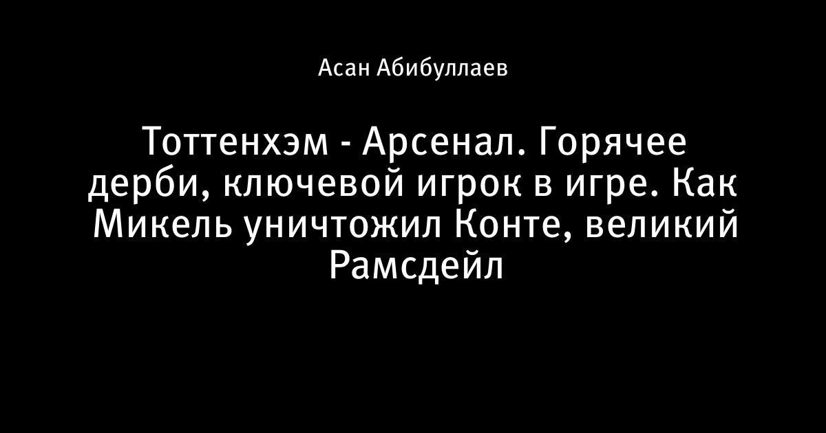 Тоттенхэм - Арсенал. Горячее дерби, ключевой игрок в игре. Как Микель уничтожил Конте, великий Рамсдейл