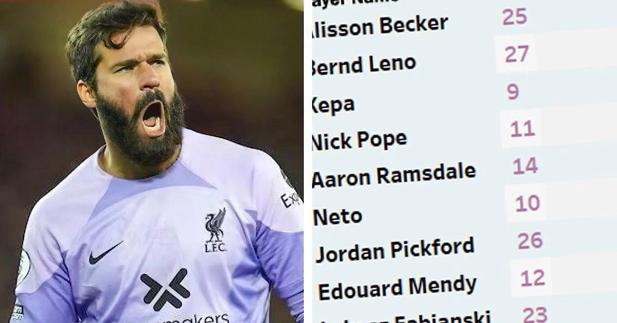 График ключевого показателя вратарей «shot-stopping ability» (умение останавливать удары) в Премьер-лиге показывает, почему Алиссон, несомненно, лучший.