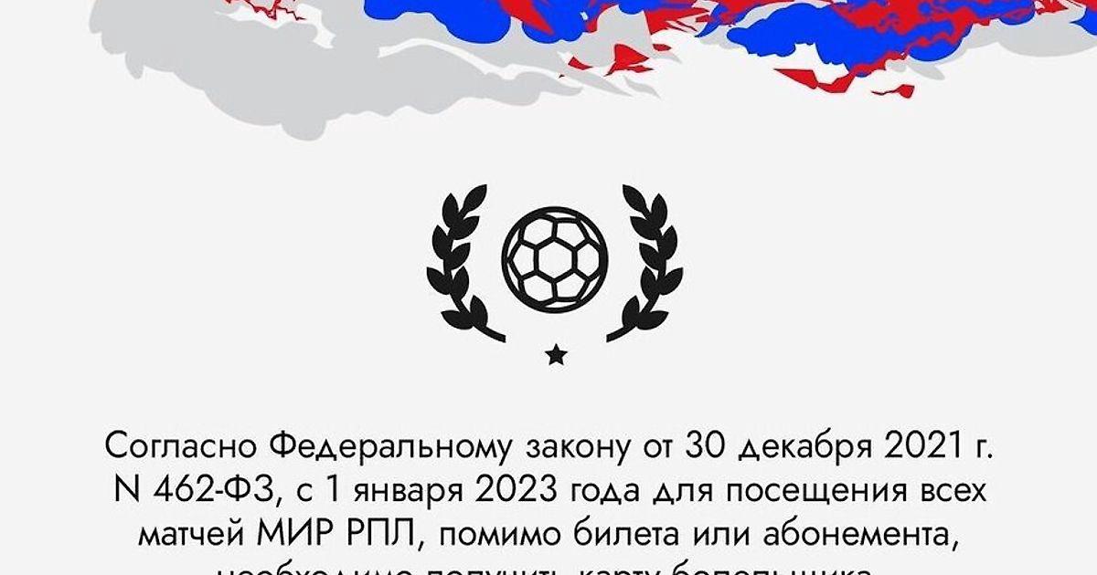 Теперь, согласно Федеральному закону от 30 декабря 2021 г. N 462-ФЗ, с 1 января 2023 года для посещения всех матчей МИР РПЛ, помимо билета или абонемента, необходимо получить карту болельщика. Это электронный документ, который будет доступен в вашем личном кабинете на Госуслугах. Карта необходима для покупки билетов и абонементов на матчи и для прохода на стадион. Этот документ необходим абсолютно всем участникам матча: болельщикам, организаторам, СМИ. Мы хотим вам помочь избежать каких-либо проблем при оформлении и получении карты болельщика – на сайте pfc-cska.com/fanid/ вы найдёте всю необходимую информацию, а также ответы на самые часто задаваемые вопросы.