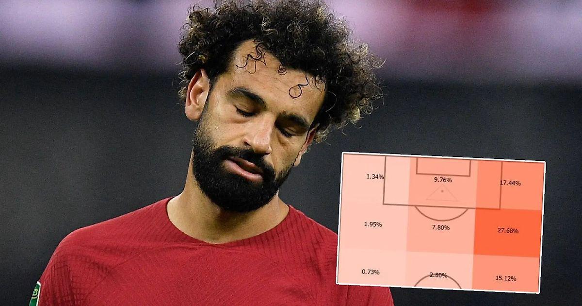 Его карта касаний наглядно показывает, какую роль он играет в атаках мерсисайдцев - египтянин слишком редко оказывается в центральной зоне.