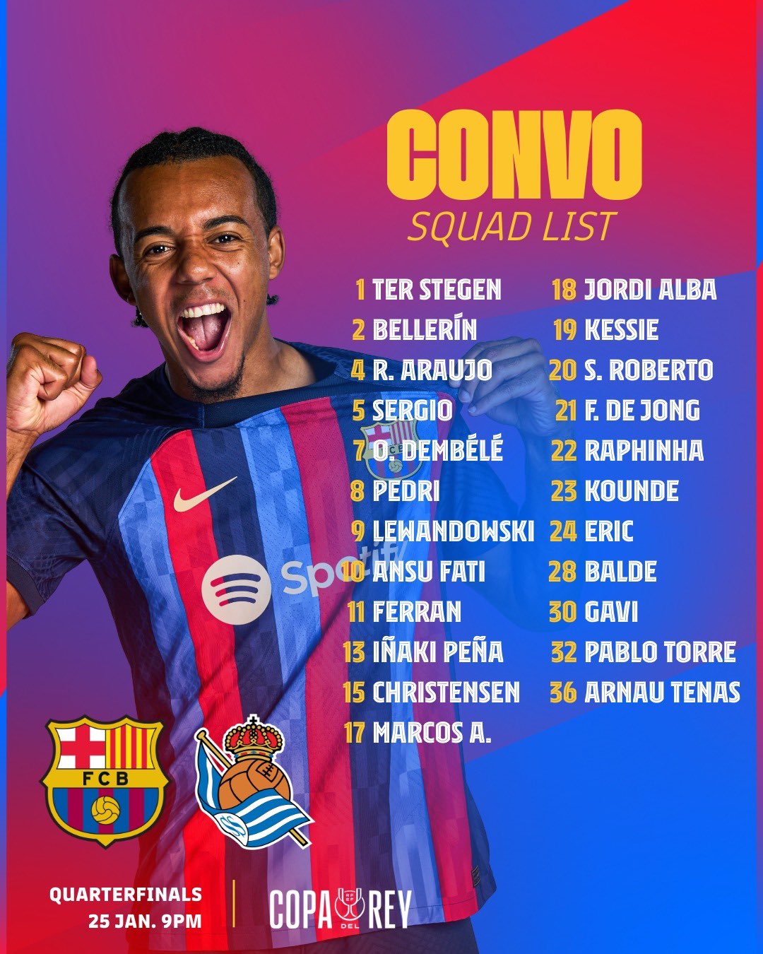Хави назвал состав «Барселоны» на матч с «Сосьедадом»: Левандовски продолжает играть, Фати, Кессиэ и Араухо – в заявке
