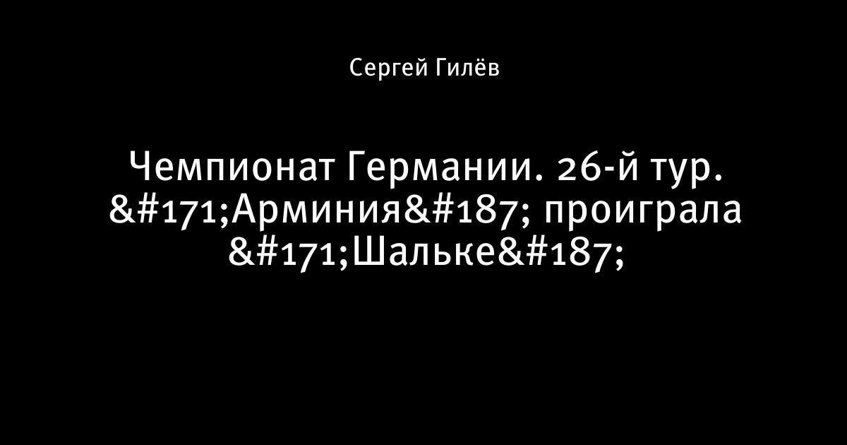 4 апреля 2009, 00:10 Чемпионат Германии. 26-й тур. «Арминия» проиграла «Шальке» И другие матчи. Арминия Шальке 04 0:2 0:1 Фарфан (45), 0:2 Кураньи (90) Автор Сергей Гилёв Этот пост опубликован в блоге на Трибуне Sports.ru. Присоединяйтесь к крупнейшему сообществу спортивных болельщиков! Другие посты блога Разборки в олимпийском Париже