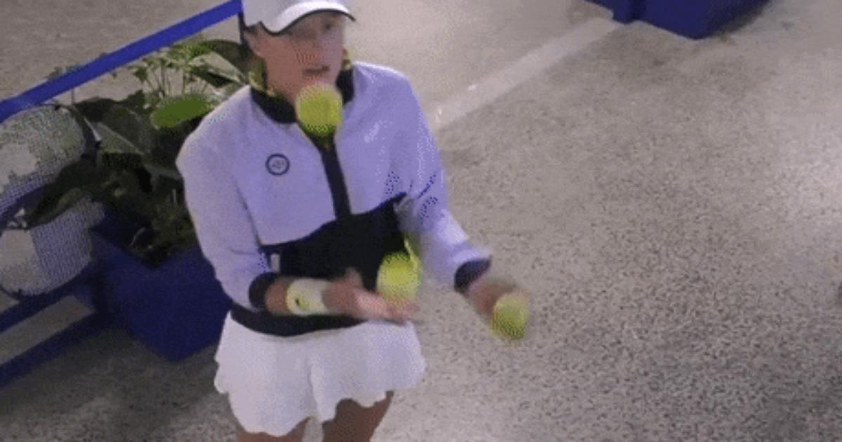 Ига Швентек жонглирует и одной рукой – причем владеет и правой, и левой.