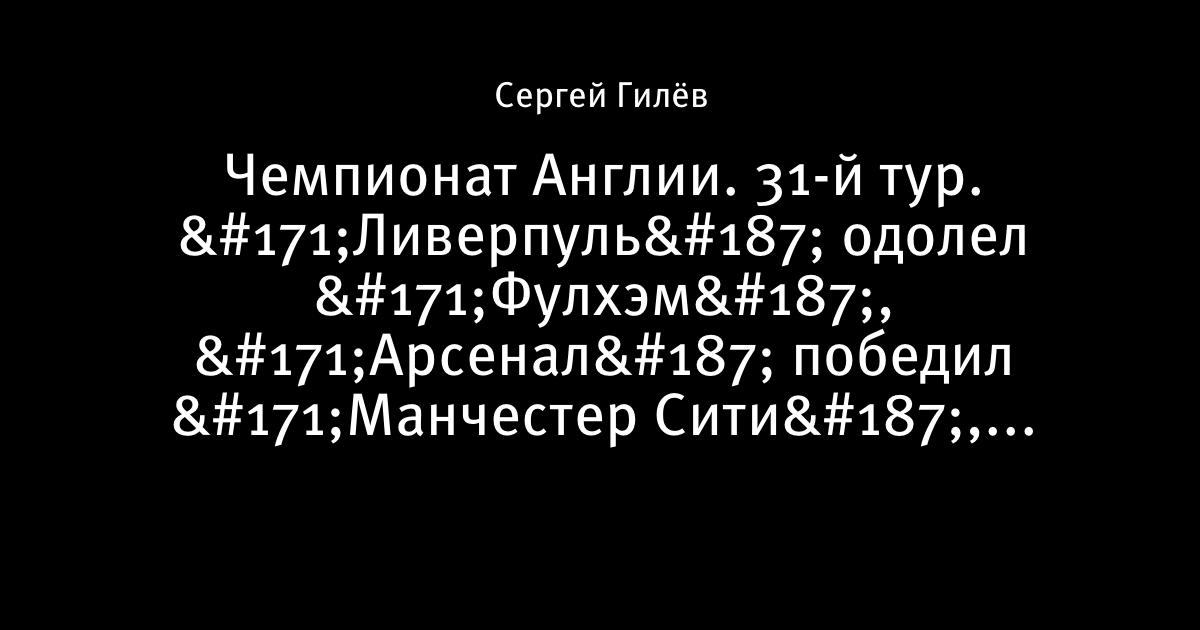 Чемпионат Англии. 31-й тур. «Ливерпуль» одолел «Фулхэм», «Арсенал» победил «Манчестер Сити», «Челси» «Ньюкасл»