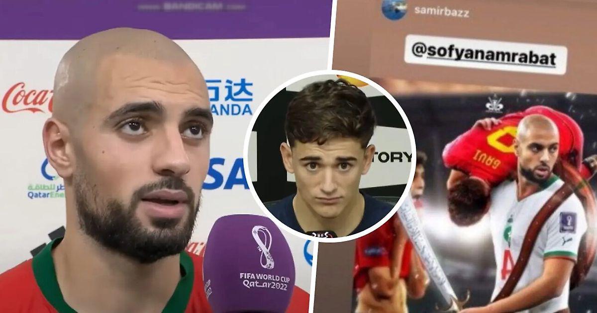После того, как Марокко выбило из чемпионата мира Испанию на этапе 1/8 финала, Софьян Амрабат опубликовал у себя в соцсетях отфотошопленные фотографии с игроками «Барселоны». Педри, Гави и Серджи Бускетсу досталось от полузащитника «Фиорентины».