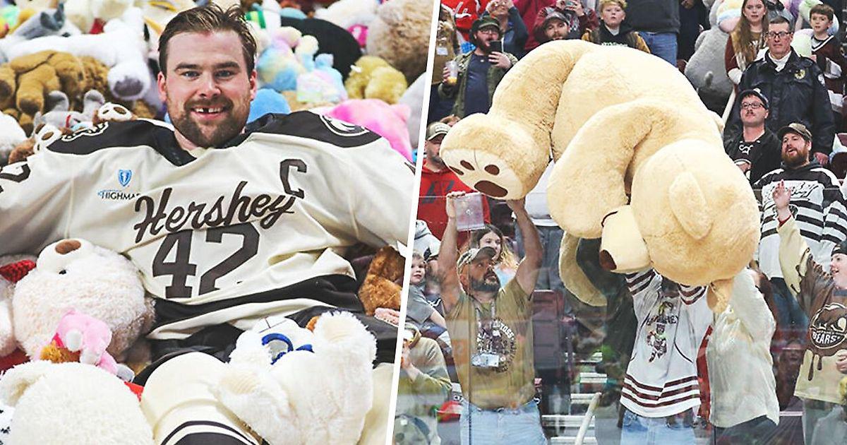 Хоккеисты «Беарс», конечно, переживали поражение – но сложно делать это долго, когда ты стоишь под дождем из игрушек. Некоторые все же не сдержались. Все же эта акция должна приносить улыбки всем.