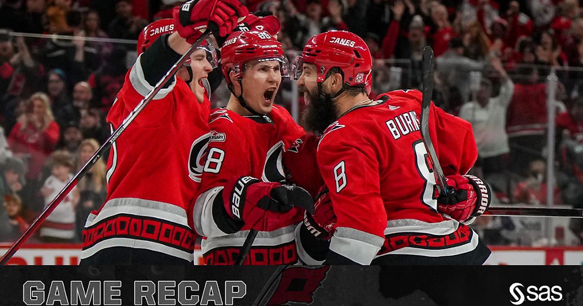 "Каролина Харрикейнз"-"Лос-Агджелес Кингз" 5:4 (ОТ).Себастьян Ахо в овертайме принёс победу хозяевам.Брент Бёрнс набрал 2 очка (1+1),Андрей Свечников отдал 2 результативные передачи,Фредерик Андерсен отразил 17 бросков.У гостей Анже Копитар набрал 3 очка (1+2),Адриан Кемпе забросил 2 шайбы,Дрю Даути отдал 2 результативные передачи."Ураганы" выиграли 6 игру подряд.
