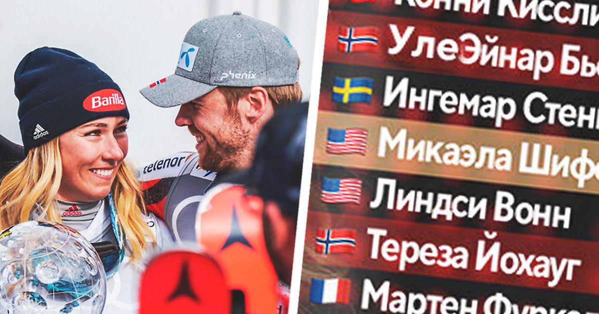 Микаэле Шиффрин всего 27 лет, в списке абсолютных мировых легенд рядом с ней – сплошь седовласые ветераны.