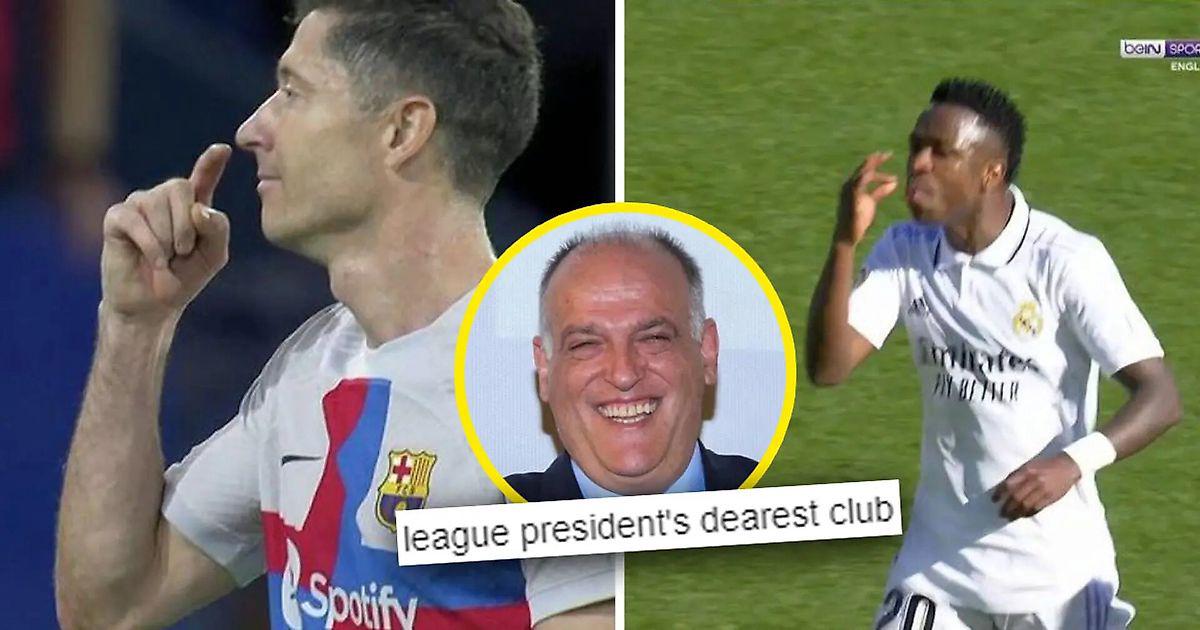 💭 «Значит, Винисиус будет дисквалифицирован как минимум на три матча, верно? О, я забыл, что он играет за любимый клуб президента Ла Лиги! Самое забавное, что Винисиус сделал точно такой же жест, что и Леви, смотря рефери в глаза! А Левандовски даже рядом с арбитром не стоял».