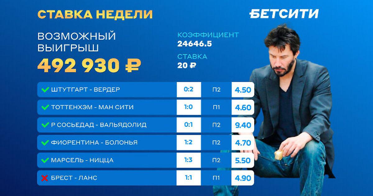 Игрок БЕТСИТИ выбрал шесть воскресных футбольных матчей в Европе и везде поставил на успех аутсайдеров.