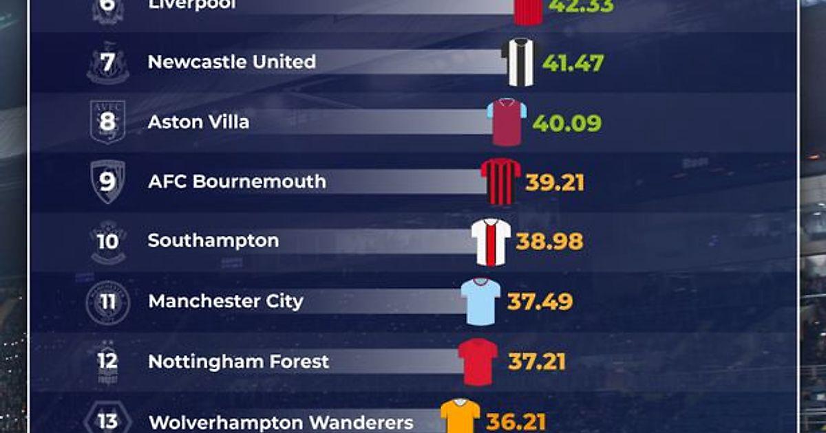 Рейтинг лояльности игроков АПЛ. В цифрах указано среднее количество месяцев, который провёл каждый игрок клуба за последние 20 лет.