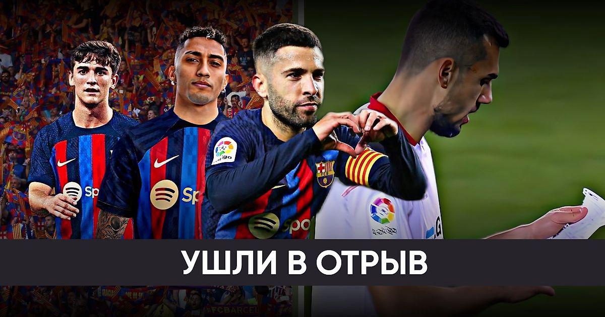 А затем, уже стянув «Севилью» на правый фланг, «каталонцы» с помощью перевода Рафиньи возвращают мяч на левый фланг, где абсолютно свободный Альба: