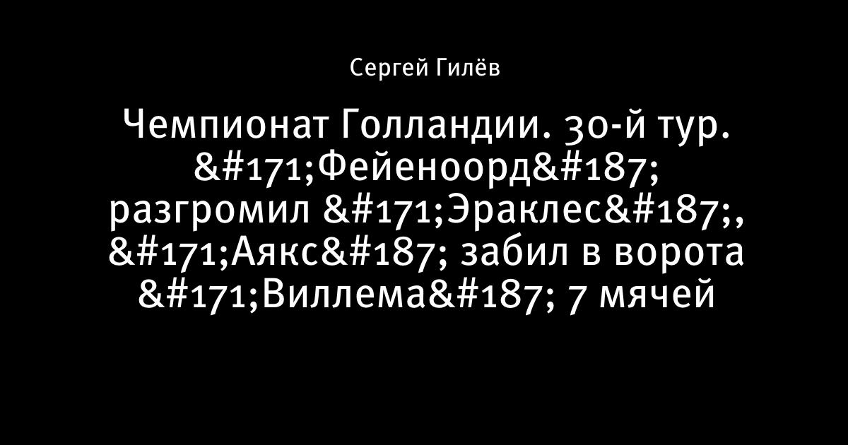 Чемпионат Голландии. 30-й тур. «Фейеноорд» разгромил «Эраклес», «Аякс» забил в ворота «Виллема» 7 мячей