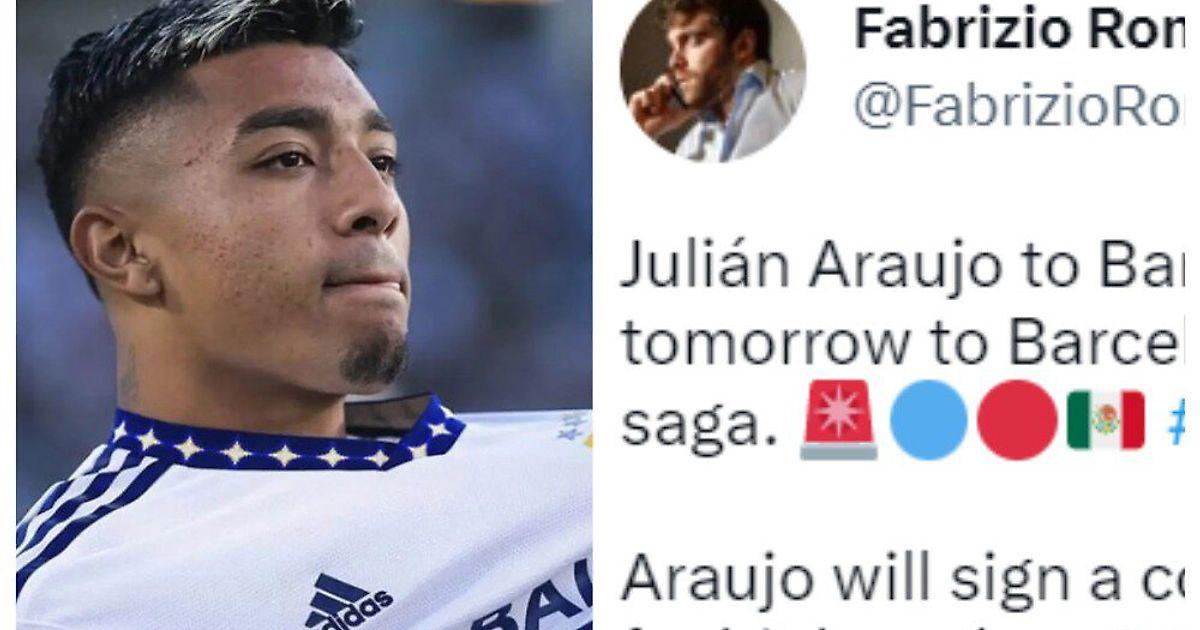 «Хулиан Араухо в «Барселоне», поехали! Мексиканский правый защитник завтра отправится в «Барселону» — сделка наконец-то заключена после безумной саги о срыве дедлайна. Араухо подпишет контракт до июня 2026 года, сделка согласована с «Лос-Анджелес Гэлакси» на общую сумму чуть менее 4 млн евро. Дело сделано».