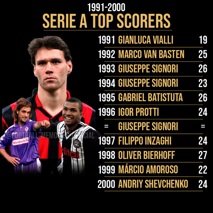Лучшие бомбардиры Серии А с 1991 по 2000 год