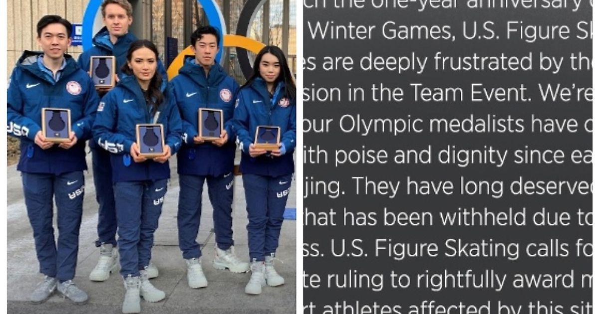 Прошел год с Олимпиады в Пекине. В честь круглой даты федерация фигурного катания США вновь напомнила об отмененной церемонии награждения 🏅