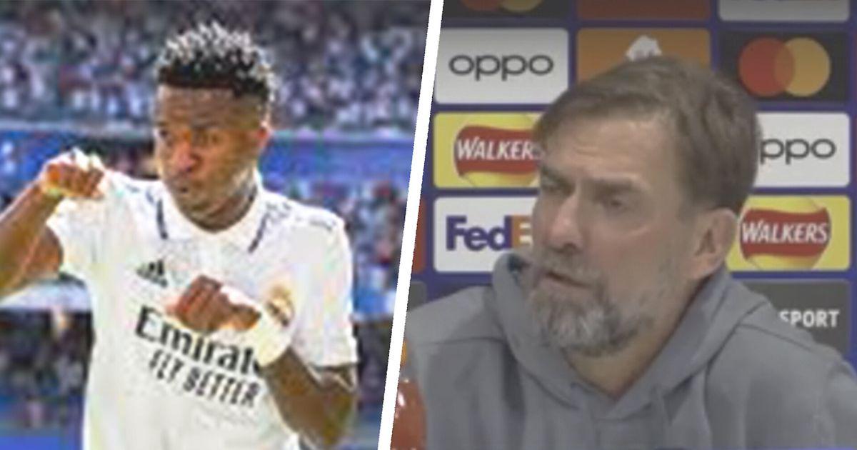 Во время пресс-конференции главного тренера «Ливерпуля» Юргена Клоппа один из журналистов поинтересовался мнением специалиста о том, как поведение хавбека «Мадрида» Винисиуса Жуниора провоцирует людей на расистские оскорбления.