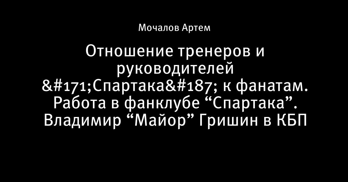 Отношение тренеров и руководителей «Спартака» к фанатам. Работа в фанклубе “Спартака”. Владимир “Майор” Гришин в КБП