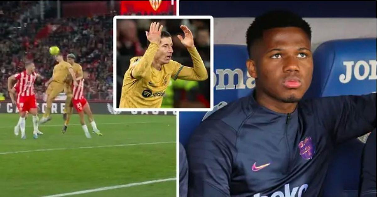 Роберт Левандовски отчитал Ансу Фати за ошибку в матче с «МЮ», а потом сам повторил ее против «Альмерии»