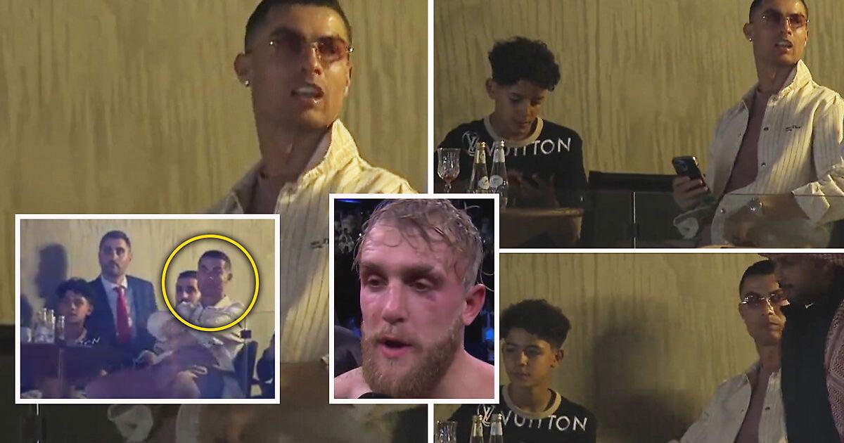 Реакция Криштиану Роналду на поражение Джейка Пола попала на камеру – его поведение заметно отличается от окружающих