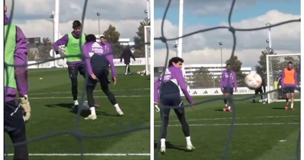 🎥Куртуа демонстрирует навыки дриблинга против Вальехо на тренировке