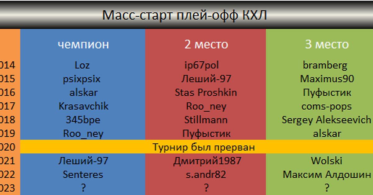 Начинаем масс-старт ПО КХЛ .Турнир будет проводиться на сайте Алексея Князева.