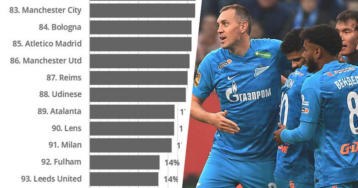 • «Зенит» в этом рейтинге занял 61-е место с долей в 35%.